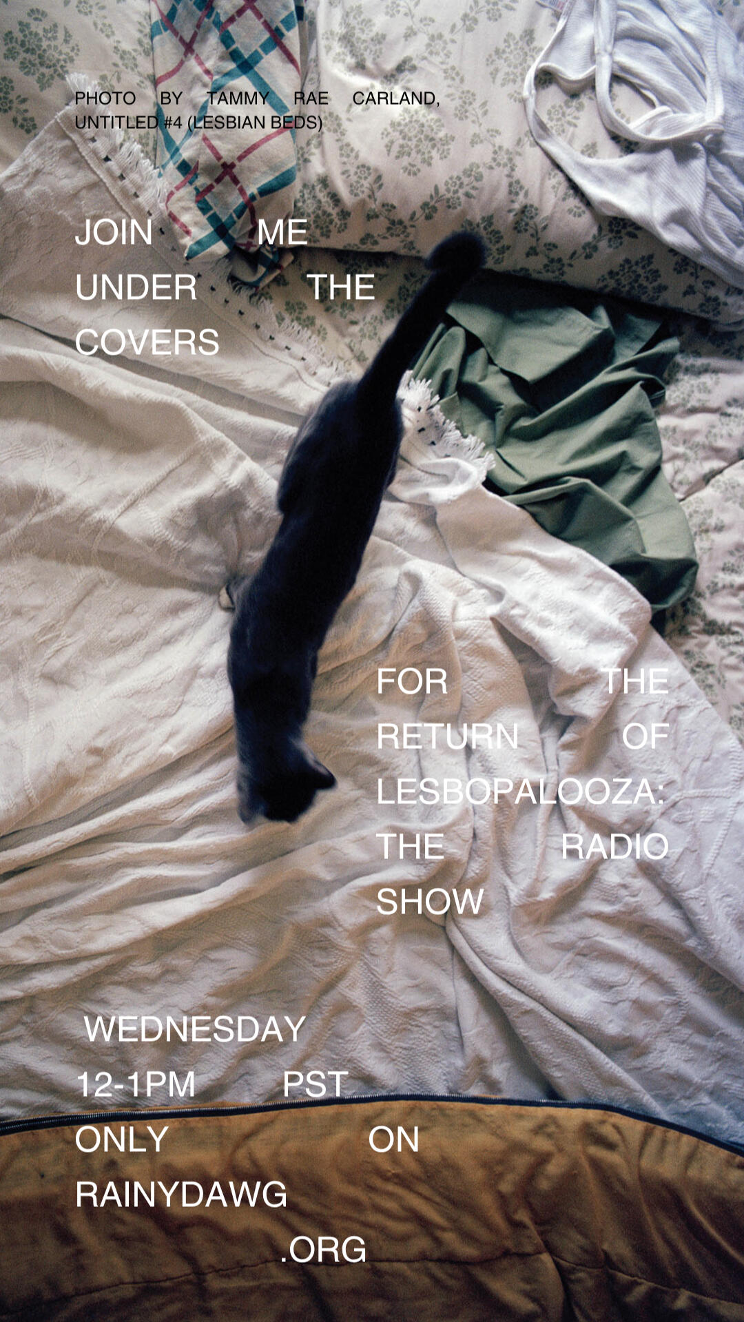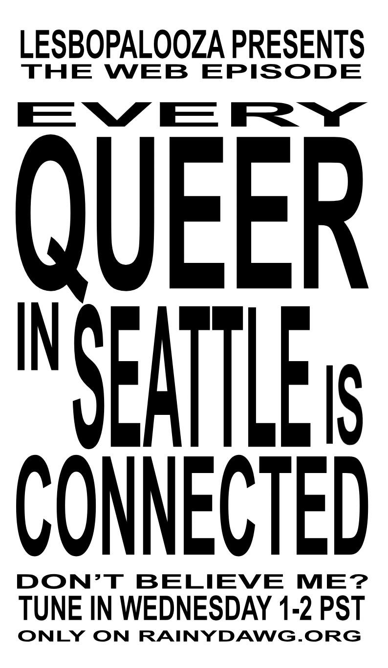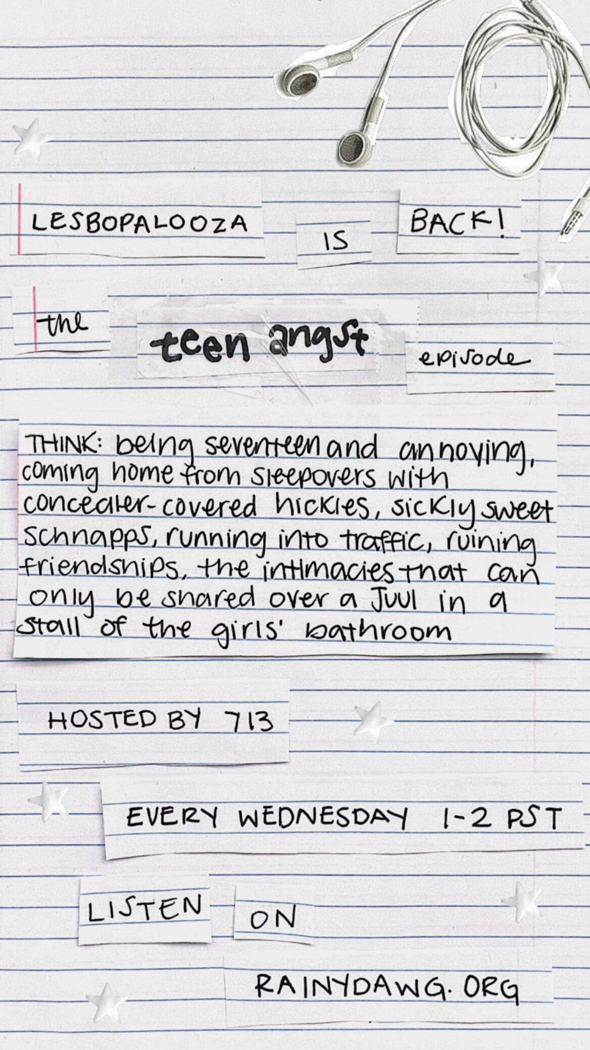 on the right: flyers for the college radio show LESBOPALOOZA
